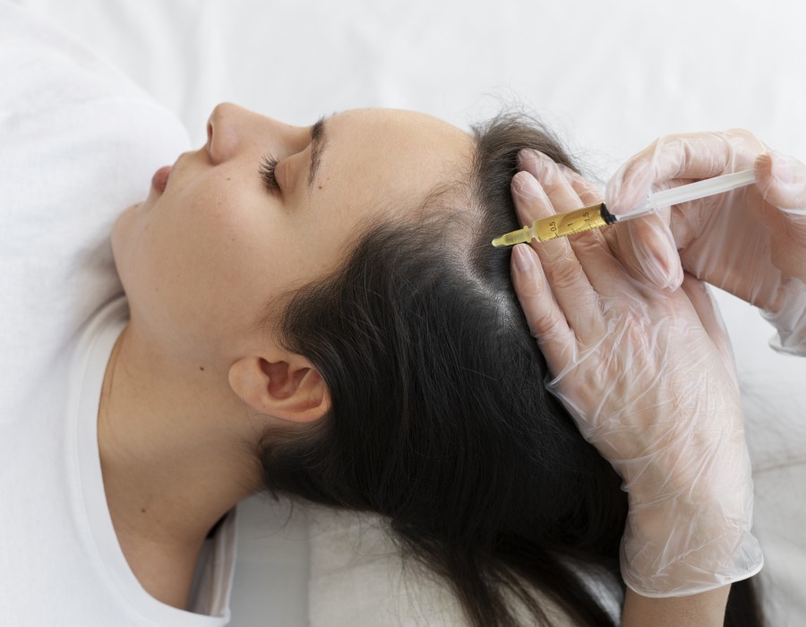 PRP is a medical procedure that utilizes the patient's own blood to stimulate hair follicles and promote hair growth. The treatment works by extracting a small amount of blood from the patient, processing it to isolate the platelet-rich plasma, and then injecting this concentrated plasma into the scalp. Platelets are rich in growth factors that play a crucial role in tissue repair and regeneration, including hair follicles.