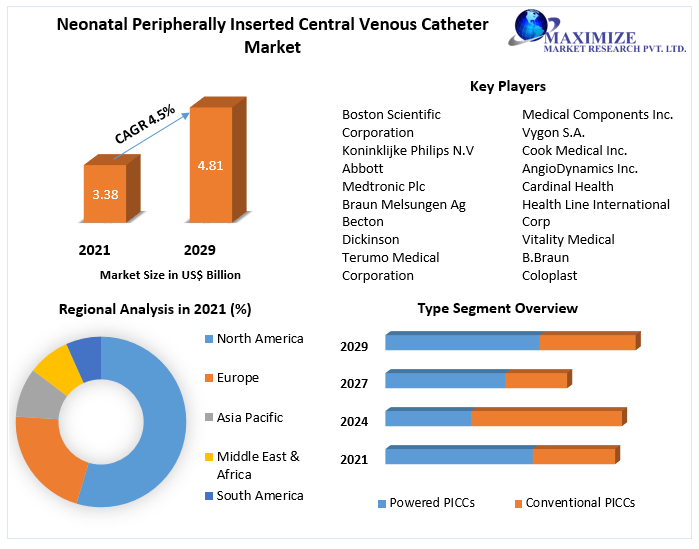 Neonatal Peripherally Inserted Central Venous Catheter (PICCs) Market is expected to reach US$ 4.81 Bn. at a CAGR of 4.5% during the forecast period 2029.