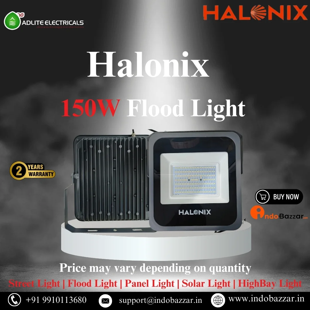 The Halonix 150W Flood Light is a high-performance lighting solution designed to illuminate outdoor spaces with exceptional brightness and efficiency. With its powerful 150 LED module, it delivers ample illumination, making it ideal for stadiums, parking lots, warehouses, and outdoor events. Featuring a robust and weather-resistant construction, this floodlight is built to withstand harsh environmental conditions, ensuring long-lasting performance. Its sleek and modern design seamlessly integrates into any outdoor setting, providing both functionality and aesthetics. Whether for commercial or residential applications, the Halonix 1500W Flood Light offers reliable illumination and energy savings.