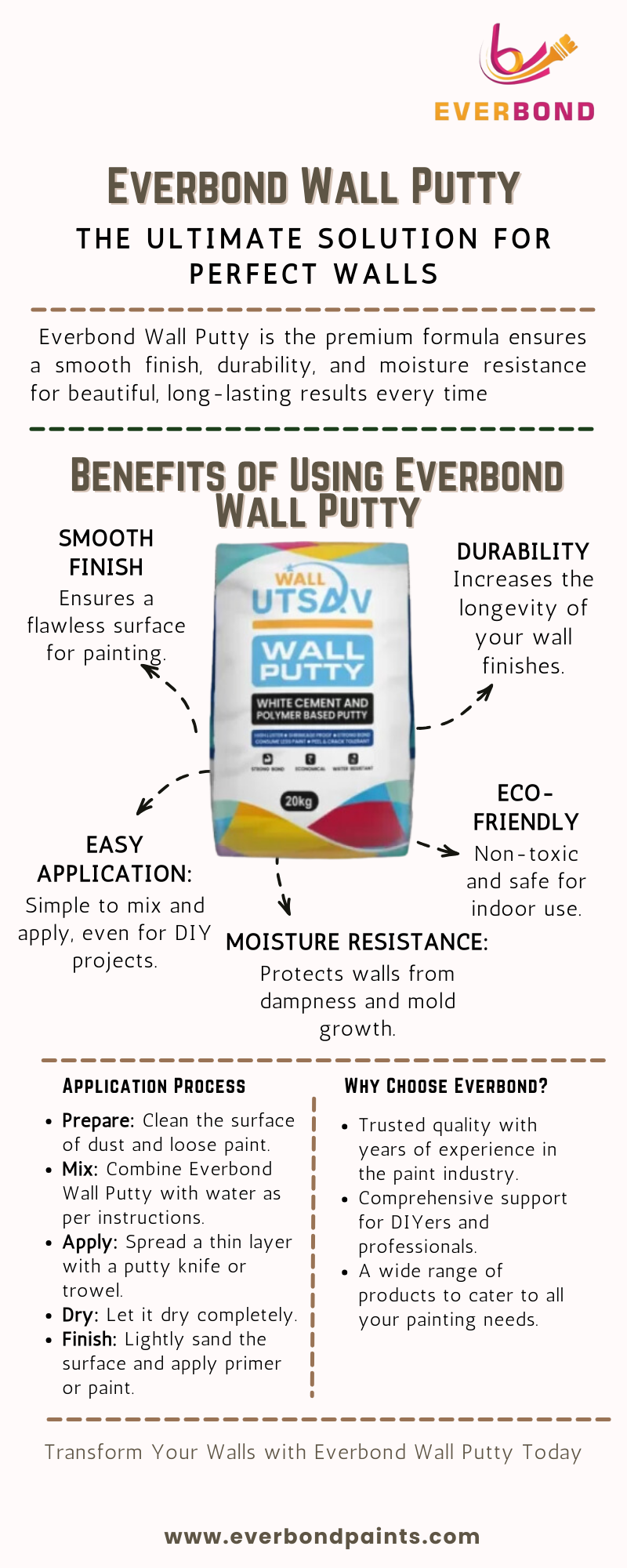Elevate your walls with Everbond's Wall Putty, designed for a smooth, even surface. Our premium formula ensures durability and long-lasting results, making your painting projects easier and more effective. Transform your spaces effortlessly with Everbond’s exceptional quality!