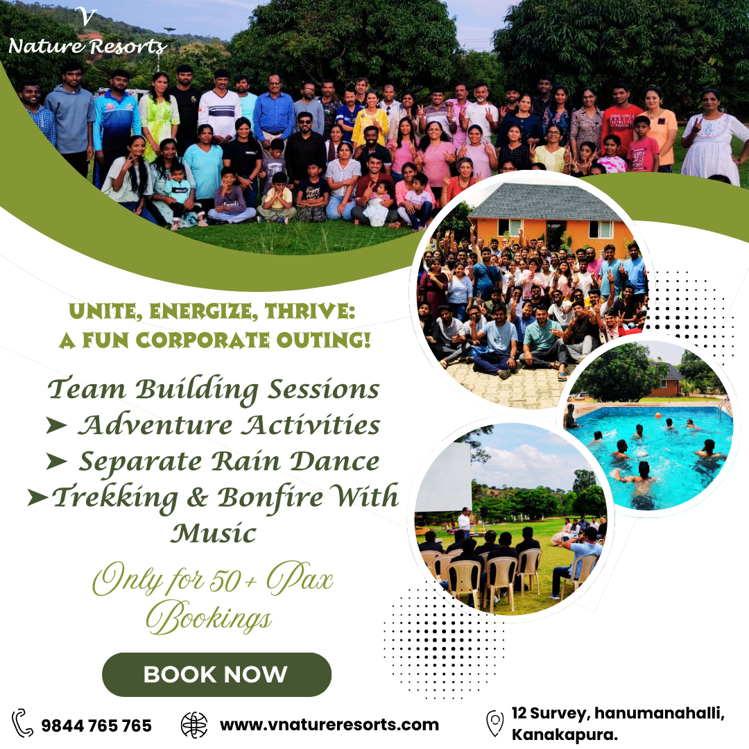 Day Outing in Kanakapura In case you are seeking out the right day out in Kanakapura, V Nature Resorts gives an interesting and rejuvenating experience amidst nature. located only a short drive from Bangalore, this lodge is good for households, company teams, and companies of pals trying to unwind, explore, and create unforgettable memories in serene surroundings.