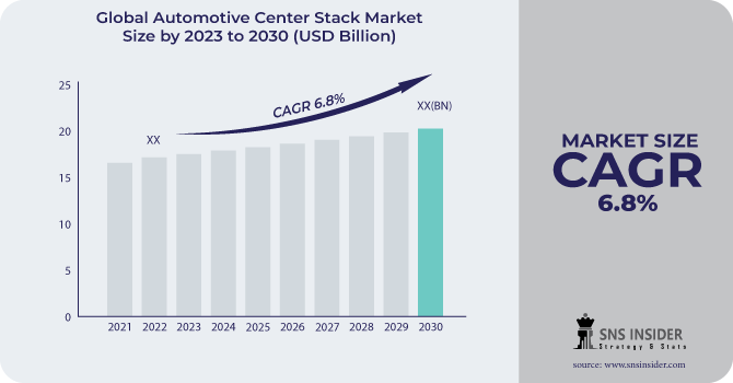 According to the SNS Insider report, The Automotive Center Stack Market Size is anticipated to achieve a CAGR of 6.8% during the forecast period from 2023 to 2030.