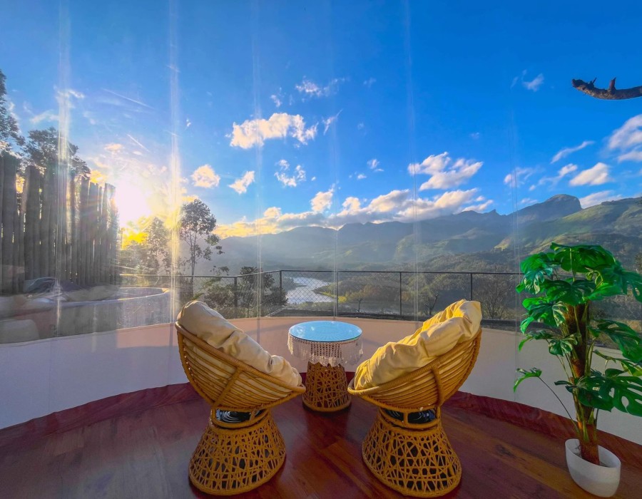 Munnar is famed for its enchanting landscapes, but nothing compares to the experience of a mountain view staycation Munnar. At Luxe Glamp, every corner is designed to maximize your connection with the hills. Floor-to-ceiling windows, private balconies, and open-air dining spaces ensure the mountains are never out of sight.