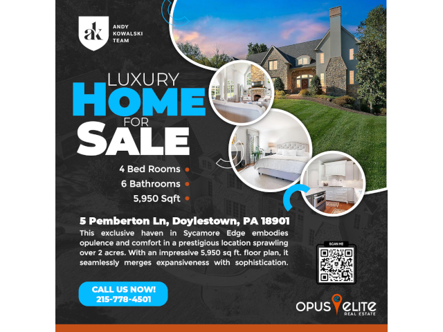 A stunning luxury residence at 5 Pemberton Ln, nestled in the prestigious Sycamore Edge community of Doylestown, is now available for sale. This custom-built estate, located on a secluded 2-acre lot, offers an ideal balance of privacy and access to local amenities, making it an attractive opportunity for families and individuals seeking a tranquil yet connected lifestyle.