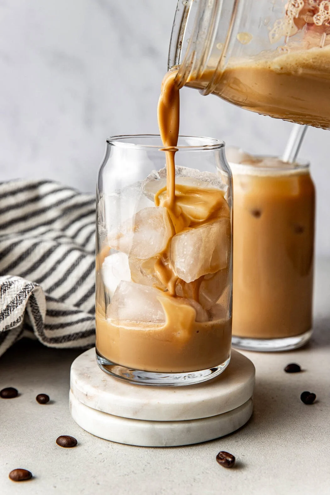 DIY is an option (and a higher-protein one at that). Use chilled coffee or cold brew, add unflavored or vanilla whey isolate (which typically ranges from 20-30g of protein per scoop) to a shaker bottle, and shake hard for 20-30 seconds. If you’re a hot coffee drinker, let your coffee cool a little first before adding protein to reduce clumping. For protein type: Casein powders thicken more than whey; pea protein blends generally mix better than mixed-grain options. If you’re lactose sensitive, opt for a lactose-free RTD or a whey isolate rather than a concentrate. You can also use a ready-to-drink protein shake instead of shaking one yourself if you’re particularly in a rush.
